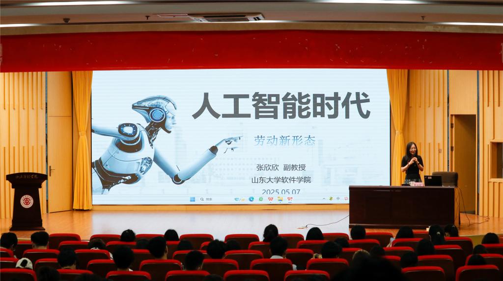 5月7日下午,学校在图书馆报告厅举办2025年劳动教育月启动活动暨明德大讲堂第十三讲。本次讲座以“人工智能时代劳动新形态”为主题,邀请了山东大学软件学院张欣欣副教授担任主讲,吸引了来自各二级学院的560余名学生代表现场参与。