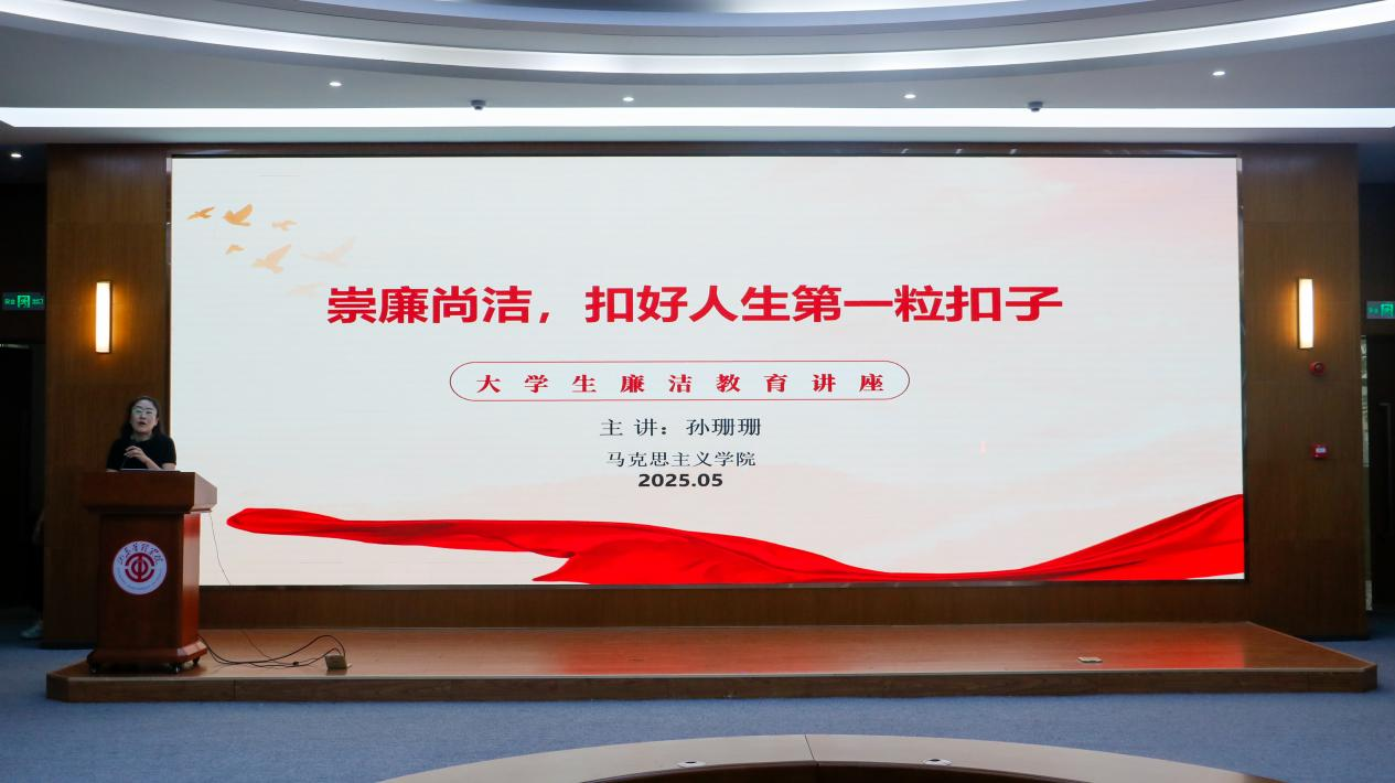 为进一步加强校园廉洁文化建设,发挥廉洁文化建设在立德树人根本任务中的重要作用,引导青年学生扣好人生第一粒扣子,营造风清气正的校园廉洁文化氛围,5月26日上午,学校在明远楼报告厅举办2025届毕业生“青廉课堂”。纪委、学生工作部(武装部)、各二级学院毕业班辅导员、毕业生代表等100余人参加活动。