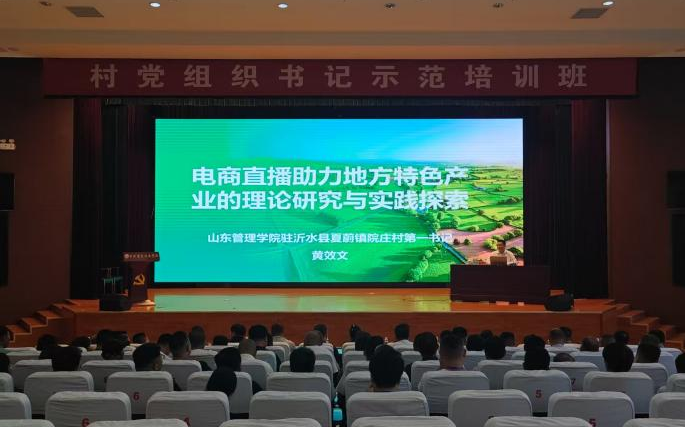 9月22日下午,在烟台市乡村振兴学院会议室,米兰体育官方网站首页入口驻沂水县夏蔚镇院庄村第一书记黄效文以《电商直播助力地方特色产业的理论研究与实践探索》为题,向来自青岛的各级基层党组织书记授课,从国家战略下的电商直播政策导向、电子商务及交易模式、电商直播发展现状与趋势、特色产业直播运营方法、助力特色产业实践案例等五个方面介绍如何利用电商直播推动当地经济发展。会后,参训学员纷纷表示对电商有了更深入的了解和新的认识,尽快把学习成果转化为工作实效。