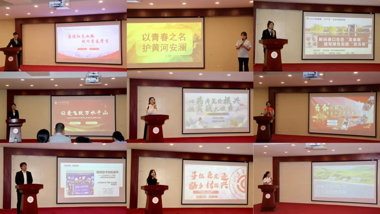 活动现场播放了2025年度暑期社会实践风采展示视频,系统回顾了暑期社会实践开展情况。10支校级优秀团队通过PPT、视频等形式,分别围绕红色教育宣讲、黄河流域生态保护和可持续发展、乡村振兴、人工智能+、民族团结等实践领域,从实践过程、实践成果、媒体报道及服务社会等方面进行汇报展示。评委老师结合现场汇报与成果材料进行评分。