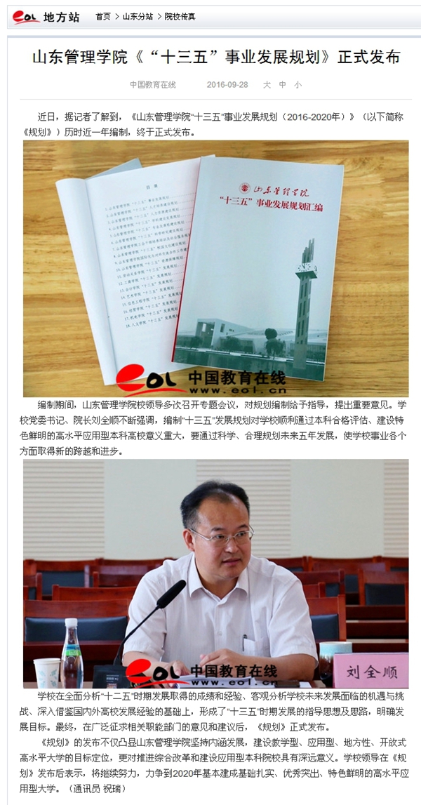 编制期间,学校领导十分重视《规划》的编制工作,多次召开专题会议听取编制情况汇报,对规划编制给予指导,提出重要的修改意见,解决规划编制过程中出现的问题。党委书记、院长刘全顺强调,编制“十三五”发展规划对学校顺利通过本科合格评估、建设特色鲜明的高水平应用型本科高校意义重大,要通过科学、合理规划未来五年发展,使学校事业各个方面取得新的跨越和进步。