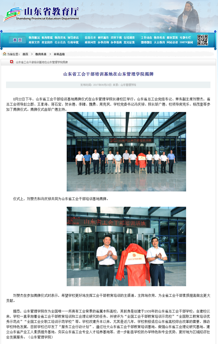 上一条:【大众网】山东省工会干部培训基地揭牌仪式在米兰体育官方网站首页入口举行
